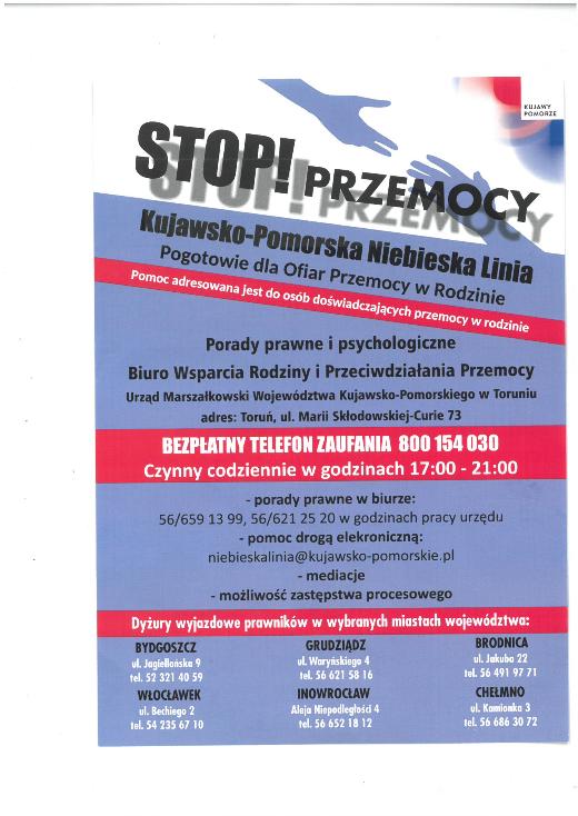 PRZEMOC W RODZINIE JEST PRZESTĘPSTWEM ŚCIGANYM PRZEZ PRAWO!